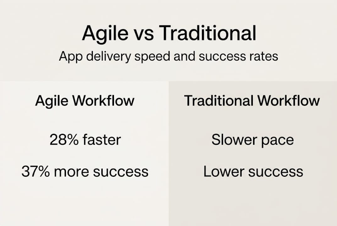 The numbers make a strong case for Agile. Agile projects are 28% more successful and 37% faster than traditional methods. That is a significant competitive advantage for any business trying to get a product to market quickly.