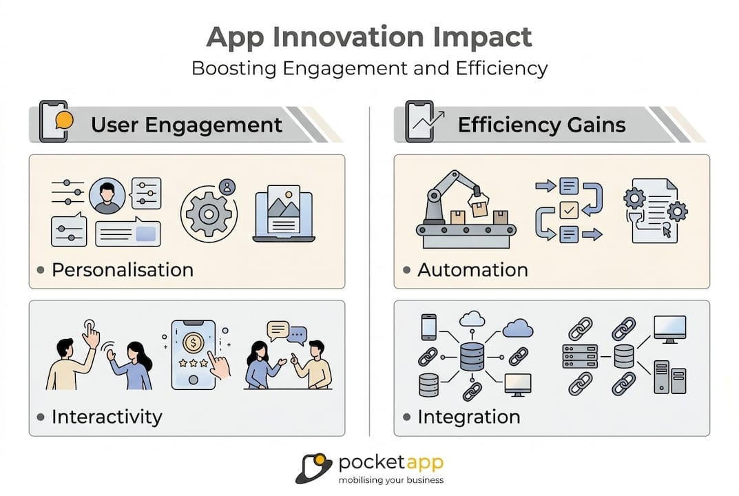 Innovative features like personalisation and interactivity significantly boost engagement by making each user session feel relevant and purposeful rather than generic. When a retail customer opens an app and sees recommendations based on their actual purchase history, they stay longer and return more often. When a healthcare patient receives a proactive reminder calibrated to their care plan, trust in the service deepens.